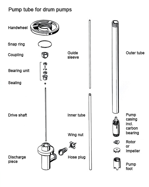 Pumpa se sastoji od pogonskog motora i pumpne cijevi prikladne za odgovarajuću primjenu, koja uspravno stoji kao usisna cijev u bušotini, ili bačvi od 200 litara ili IBC spremniku i predstavlja stvarnu pumpu. Uz električne motore na 230, 115, 24 i 12 V, mogu se koristiti i motori sa zračnim pogonom s maks. radnim tlakom do 6 bara. Pogonski motori se ručno kotačem brzo i jednostavno spajaju na usisnu pumpnu cijev tako da se različite pumpne cijevi mogu kombinirati s istim pogonskim motorom.