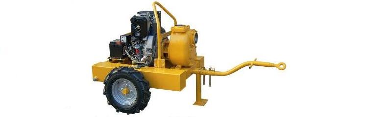 Mobilne pumpe velikog kapaciteta koje pokreće dizelski motor na prikolici s dva kotača i rudom:
